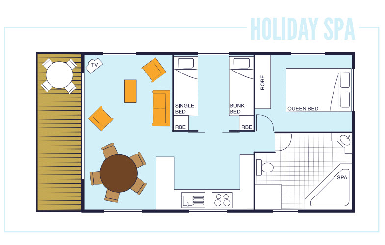 The self contained kitchen allows you to perfect your masterchef skills and comes complete with a full-sized fridge, microwave and oven.